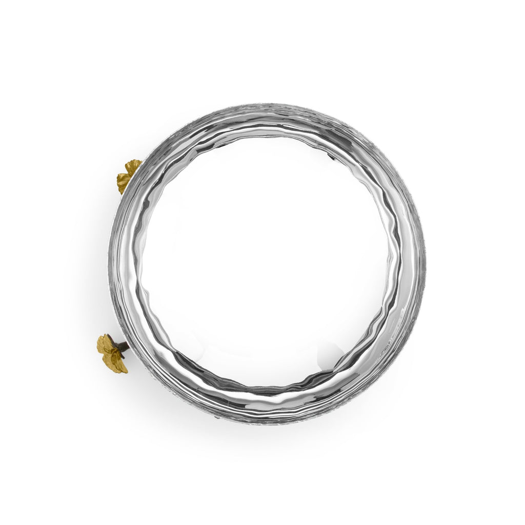 The Butterfly Ginkgo Collection celebrates the representation of flora as fauna. Michael's fascination with a particular type of ginkgo tree , the Ginkgo Biloba, or "Butterfly Ginkgo", which grows with a double leaf reminiscent of a butterfly's wings, gave rise to a fantasia image of the plant. Executed at the highest level of handcraftsmanship, each piece is rendered in solid brass with hand etched cocoon-shaped vessels. The pieces in the collection are a tour de force of the handcrafted process, capturing the poetic spirit that is so deeply indicative of Michael's work.