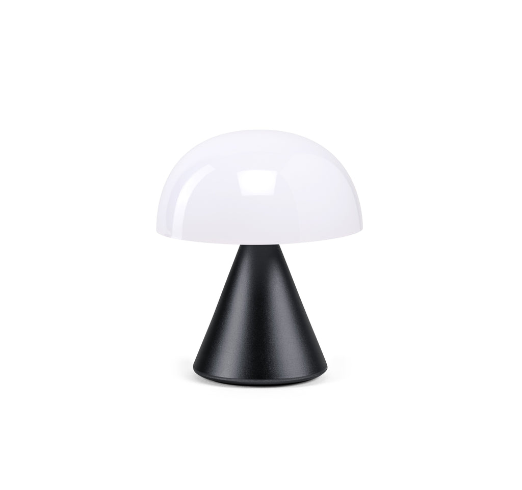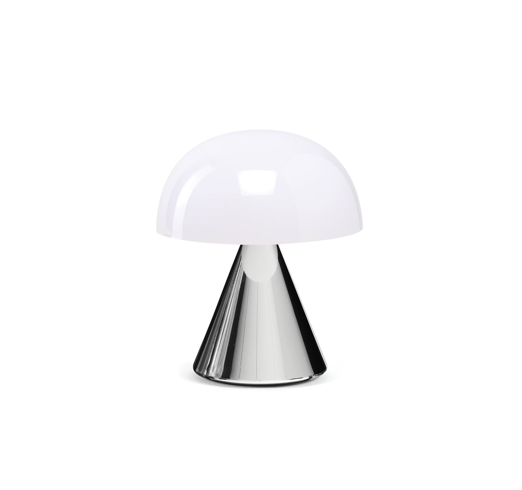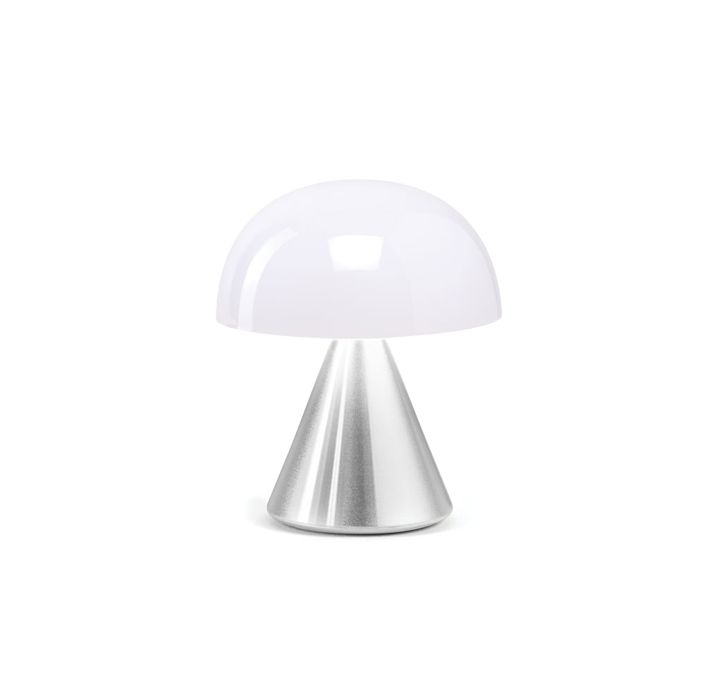 Mina offers two lighting settings - hot and cold - and a dimmer, all controlled by a button located below it. Mina is rechargeable via USB-C and can provide up to 6 hours of battery life.